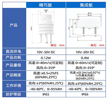 | 量程 | 風速 | 0~40m/s(可定制),0.5m啟動風速 |